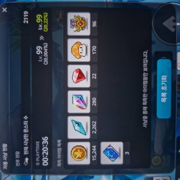 - 획득 경험치: 0.216% (20.22% - 20.004%)
