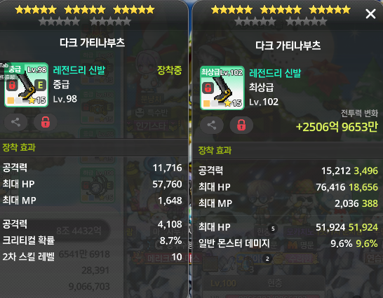 👉 아이템 : '다크 가티나부츠' 비교 결과, 오른쪽을 추천합니다!