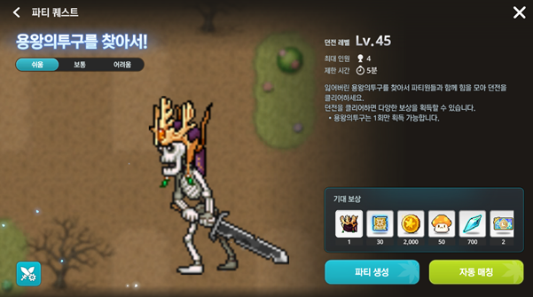 - 용왕의투구를 찾아서! 파티 퀘스트를 클리어하고 보상을 받는 이벤트가 추가됩니다.
