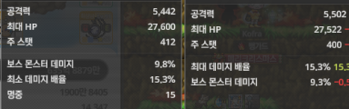 👉 아이템 : '물컹물컹한 반지' 비교 결과, 오른쪽을 추천합니다! 🔍 오른쪽 🔥: 총 공격력 5,502, 최대 데미지 배율 15.3%, 보스 몬스터 데미지 9.3% 🔍 왼쪽 : 총 공격력 5,095, 최대 데미지 배율 15%, 3차 스킬 레벨 16, 크리티컬 데미지 9.2% 💡 분석 코멘트 오른쪽 반지가 총 공격력과 보스 몬스터 데미지에서 약간 앞서고, 왼쪽 반지는 크리티컬 데미지가 조금 더 높습니다. 하지만 미세한 차이일 뿐, 오른쪽 반지에 '보스 몬스터 데미지'가 붙어있어 최종적으로 더 유리합니다. ⚠️ 경고 아... 괜히 열심히 계산했나? 😅 사실 나도 아직 쪼렙이라... 이 템이 진짜 좋은 건지는 장담 못 해! 혹시라도 후회해도 난 모른다? ㅌㅌ=3 🙏 부디 현명한 선택 하시길! 👻