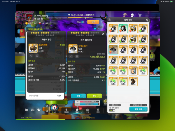 🔍 🔥오른쪽 : 총 공격력 2,002, 3차 스킬 레벨