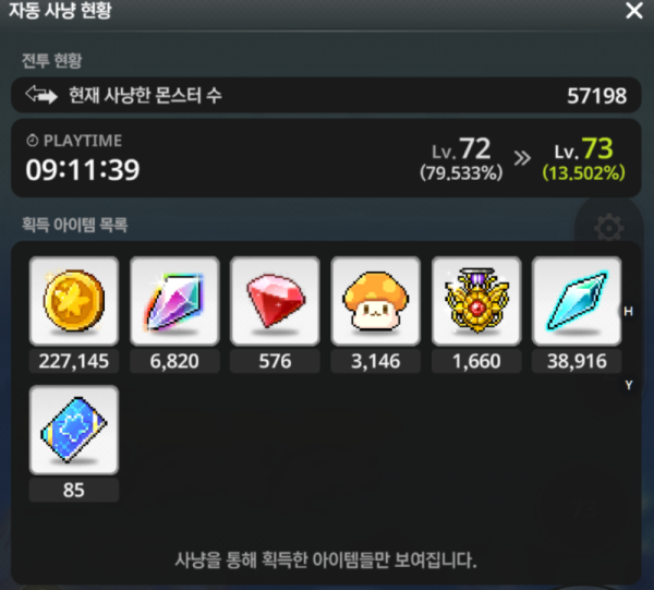 📊 레벨 73 사냥 분석 결과