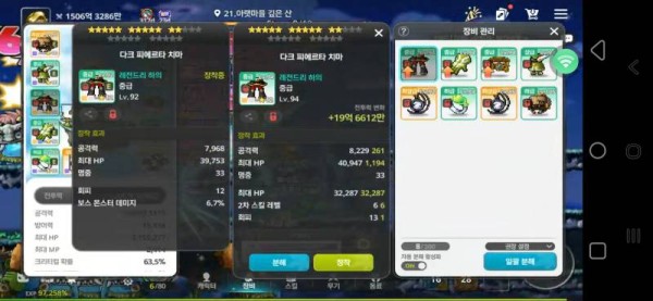 왼쪽 : 총 공격력 7,968, 보스 몬스터 데미지 6.7%