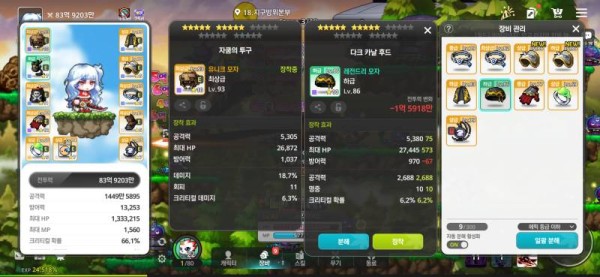 🔍 🔥 오른쪽 : 총 공격력 8,068, 크리티컬 확률 6.2%