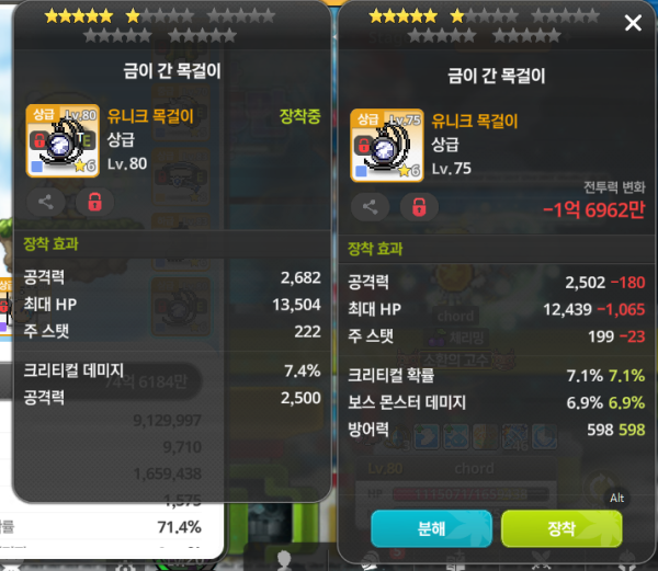 👉 아이템 : '금이 간 목걸이' 비교 결과, 왼쪽을 추천합니다!
