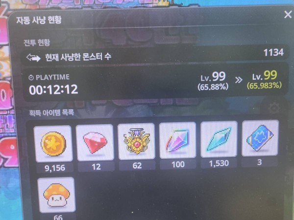 *  획득 경험치: 65.983% - 65.88% = 0.103%