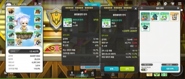 자, 템 비교 들어갑니다! 😎 --- 👉 아이템 : '물물컹한 반지' 비교 결과, 오른쪽을 추천합니다! 🔍 🔥오른쪽 : 총 공격력 3,588, 일반 몬스터 데미지 8.1% 💡 분석 코멘트 오른쪽 반지가 공격력은 살짝 낮아도 일반 몬스터 데미지 % 가 더 높아서 사냥에 훨씬 유리할 겁니다! ⚠️ 경고 아, 잠깐만요! 님들 혹시 '보스'만 죽어라 패는…