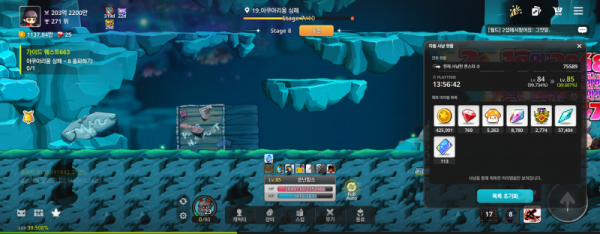 와...!! 13시간 56분 동안의 📊 [레벨 84 -> 85] [아쿠아리움 심해] 사냥 데이터군요! 이 귀한 장기 데이터를... 고생하셨습니다! 👍