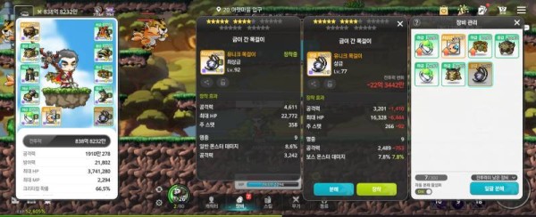 🔍 오른쪽 : 총 공격력 5,690, 보스 몬스터 데미지 7.8%