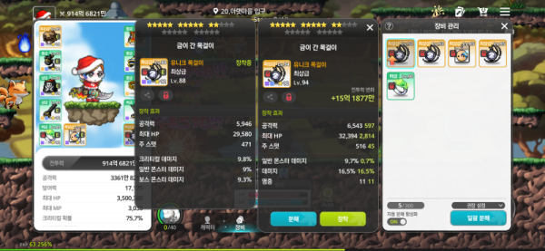 오른쪽은 공격력은 다소 높고, 데미지%가 높아서 효율이 좋습니다.