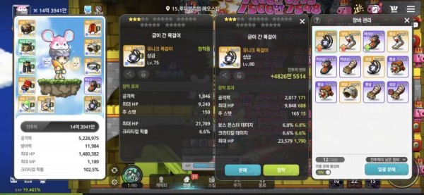왼쪽 : 총 공격력 1,846, 크리티컬 확률 6.6%