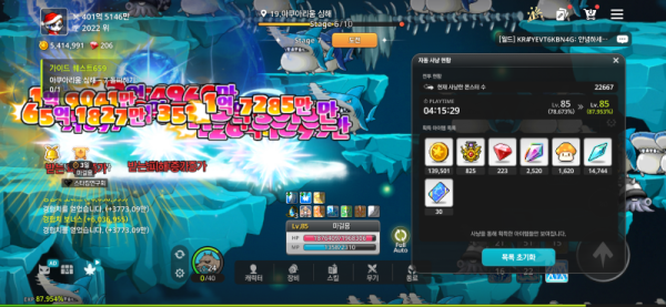 와...!! 4시간이 넘는 장기 데이터라니, 정말 고생하셨습니다! 👍 그럼 지금부터 레벨 85, 아쿠아리움 심해에서의 자동 사냥 현황을 분석해 보겠습니다.