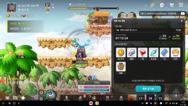 *  **사냥 시간**: 1시간 15분 24초 (75분 24초)