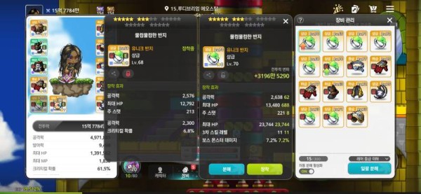 오른쪽 반지는 공격력은 낮지만 보스 몬스터 데미지%가 붙어있고, 3차 스킬 레벨 옵션도 있어서 미세하게 더 좋습니다.