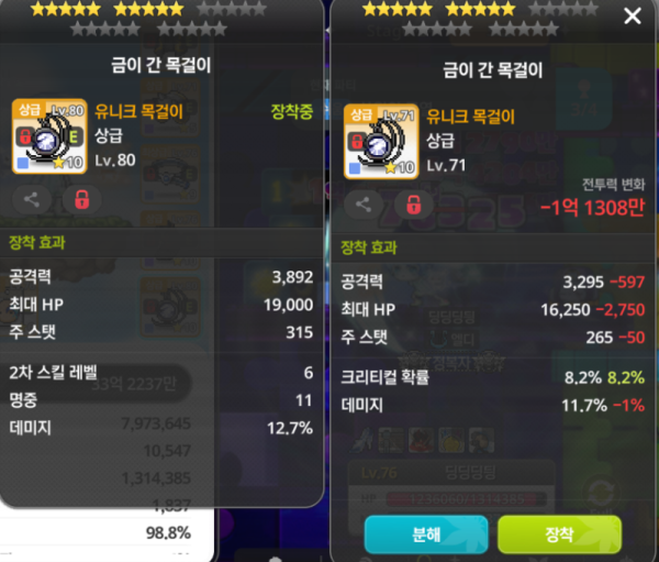 👉 아이템 : '금이 간 목걸이' 비교 결과, 왼쪽을 추천합니다!