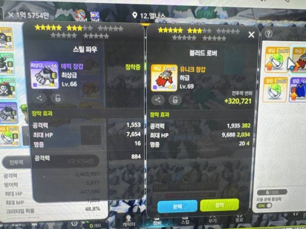 오른쪽 장갑의 총 공격력이 훨씬 높기 때문에, 다른 옵션을 고려할 필요 없이 오른쪽을 선택하는 것이 좋습니다. 공격력 차이가 꽤 크네요!