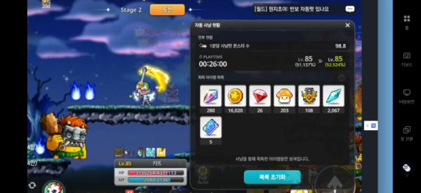 📊 Lv.85 사냥 분석 결과