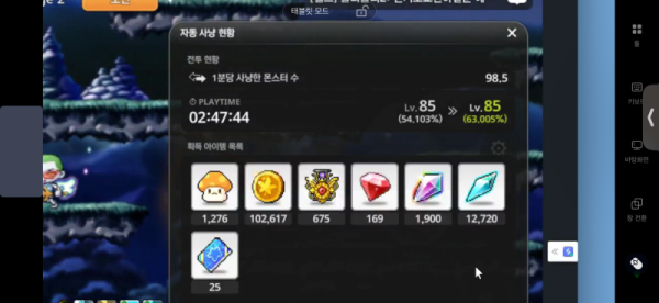 - 획득 경험치: 8.902% (63.005% - 54.103%)