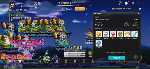 - 현재까지 37500마리 잡으셨고, **분당 95.5마리**를 사냥하셨네요.