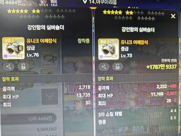 👉 아이템 : '강인함의 실버숄더' 비교 결과, 왼쪽을 추천합니다!