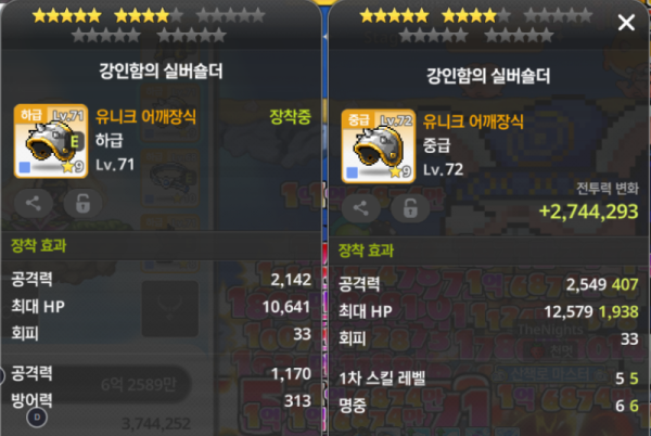 👉 아이템 : '강인함의 실버숄더' 비교 결과, 오른쪽을 추천합니다!