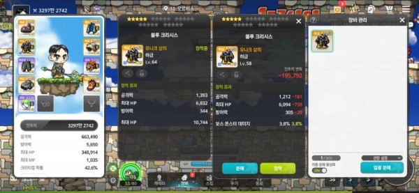 왼쪽 : 총 공격력 667, 3차 스킬 레벨 7