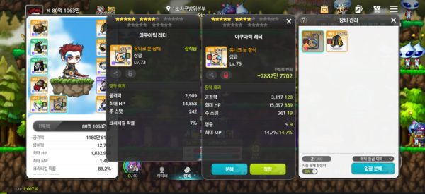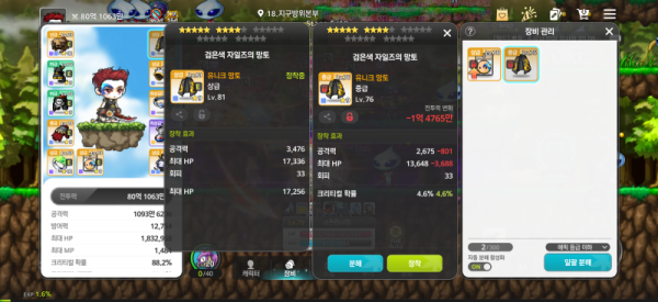 오른쪽 망토는 공격력은 좀 낮지만 크리티컬 확률 옵션이 붙어있어 효율이 더 좋습니다.