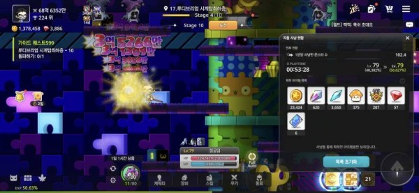*  **획득 경험치**: 2.245% (50.627% - 48.382%)