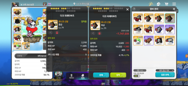 👉 아이템 : '상의' 비교 결과, 오른쪽을 추천합니다! 🔍 아이템 상세 비교 왼쪽 : 일반 몬스터 데미지 7.7%, 보스 몬스터 데미지 7.3%, 총 공격력 10,683 🔥 오른쪽 : 크리티컬 데미지 7%, 총 공격력 7,416 💡 분석 코멘트 오른쪽의 총 공격력은 다소 낮지만, [크리티컬 데미지]가 있어 점수가 훨씬 높습니다. 왼쪽의 일반 몬스터 …