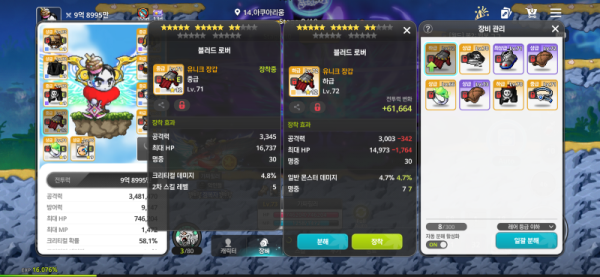 🔍 🔥 왼쪽 : 총 공격력 3,345, 크리티컬 데미지 4.8%