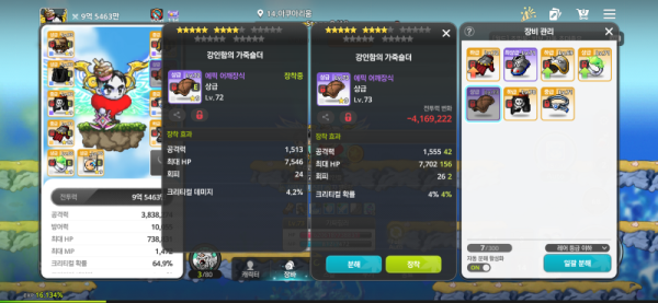 왼쪽 : 총 공격력 1,513, 크리티컬 데미지 4.2%