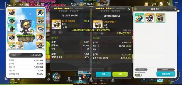 🔍 🔥 오른쪽 : 총 공격력 4,936,816, 보스 몬스터 데미지 4.8%