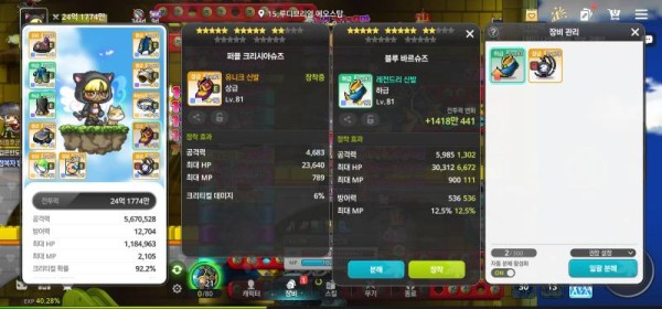 🔥 오른쪽 : 총 공격력 7,287, 최대 MP 12.5%