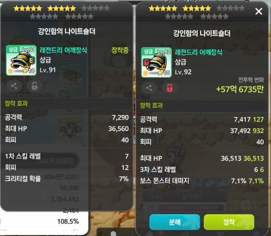 👉 아이템 : '강인함의 나이트숄더' 비교 결과, 오른쪽을 추천합니다!
