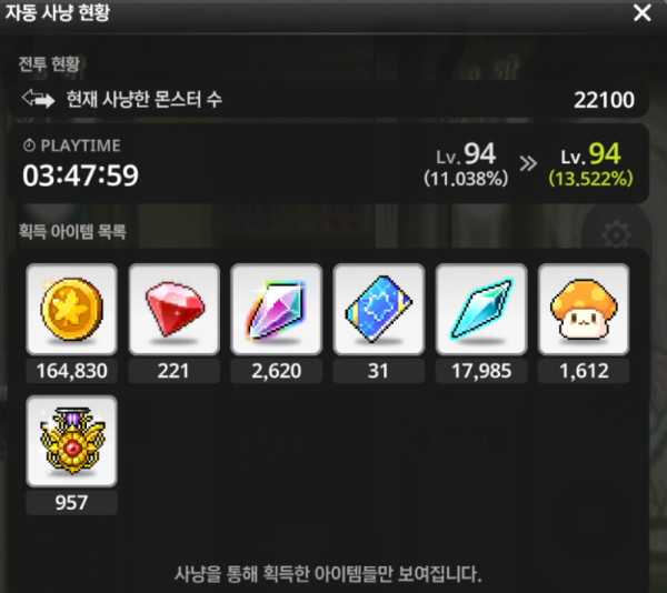 - 분당 100마리에는 살짝 못 미치지만, 시간당 효율이 0.5%를 넘으니 준수한 사냥터라고 볼 수 있겠어요.🔥