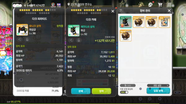다크 카테는 총 공격력이 조금 더 높지만, 크리티컬 데미지 옵션이 있는 다크 피라티드가 최종 데미지 기여도가 훨씬 높습니다.