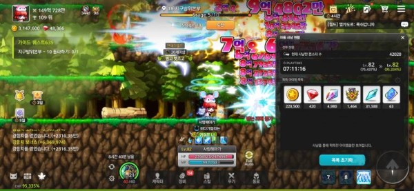 *  **획득 경험치**: 19.897% (95.334% - 75.437%)