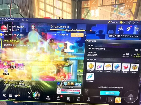 - 획득 경험치: 73.517% (78.932% - 5.415%)