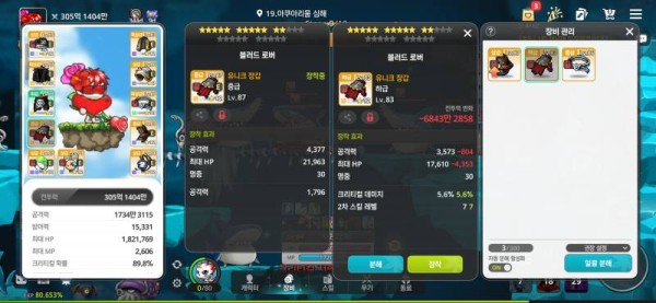 공격력 차이가 꽤 나지만, 크리티컬 데미지% 옵션은 워낙 강력해서 공격력 차이를 무시할 수 있습니다!