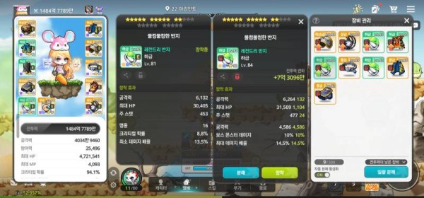 🔍 왼쪽 : 크리티컬 확률 8.8%, 총 공격력 6,132, 최소 데미지 배율 13.5%