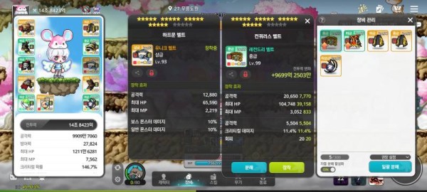왼쪽 : 보스 몬스터 데미지 10%, 일반 몬스터 데미지 10%, 총 공격력 12,880