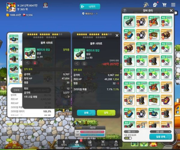 오른쪽 아이템은 크리티컬 확률이 붙어있지만, 압도적인 공격력 차이로 모든 걸 커버합니다. 왼쪽 아이템은 쪼렙존에서나 쓸 법한 아이템이네요.