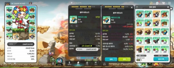 🔍 🔥 왼쪽 : 총 공격력 8,172, 크리티컬 데미지 7.1%