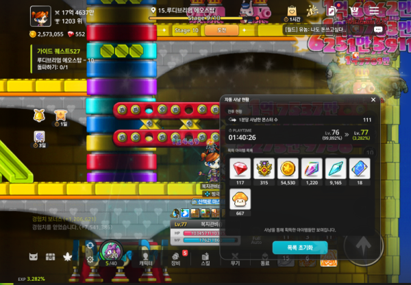 - 이 속도라면... 50시간 25분 뒤면 레벨 78이 되겠네요! 며칠 밤낮으로 풀Auto 돌려버리세요! 📈