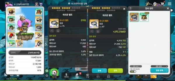 오른쪽은 일반 몬스터 데미지가 붙어있고, 왼쪽은 보스 몬스터 데미지와 크리티컬 데미지가 붙어있네요. 크리티컬 데미지 옵션이 워낙 강력해서 왼쪽을 추천합니다!