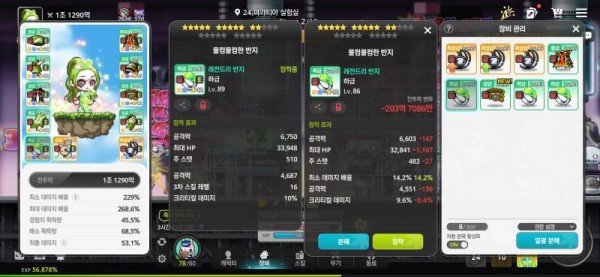 오른쪽 반지는 크리티컬 데미지 옵션이 붙어있어, 3차 스킬 레벨 옵션만 있는 왼쪽보다 훨씬 좋습니다.