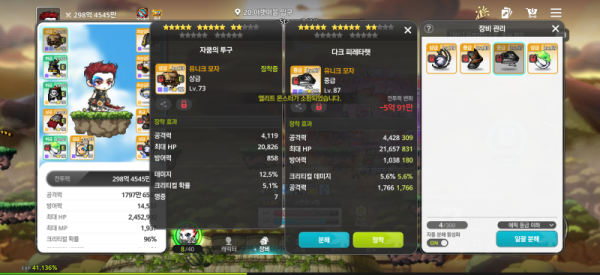 👉 아이템 : '금이 간 목걸이' 비교 결과, 오른쪽을 추천합니다! 🔍 🔥 오른쪽 : 총 공격력 6,483, 데미지 12.5% 🔍 왼쪽 : 총 공격력 6,721, 보스 몬스터 데미지 7.7%, 크리티컬 확률 8.1% 💡 분석 코멘트 오른쪽 아이템은 공격력은 조금 낮지만, 데미지%가 붙어있어 효율이 좋습니다. ⚠️ 경고 아이고... 70만 전투력으로 …