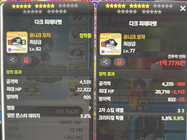 👉 아이템 : '다크 피레타햇' 비교 결과, 왼쪽을 추천합니다!