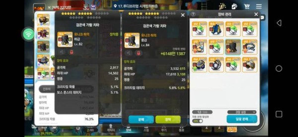 왼쪽 : 총 공격력 2,917, 보스 몬스터 데미지 5.1%, 크리티컬 확률 5.1%