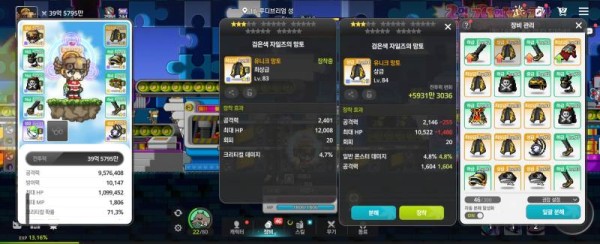 오른쪽 아이템은 총 공격력이 더 높고 일반 몬스터 데미지 옵션까지 붙어있어 사냥에 더 유리합니다. 왼쪽 아이템의 크리티컬 데미지도 좋지만, 사냥에서는 꾸준한 딜링이 중요하니까요!
